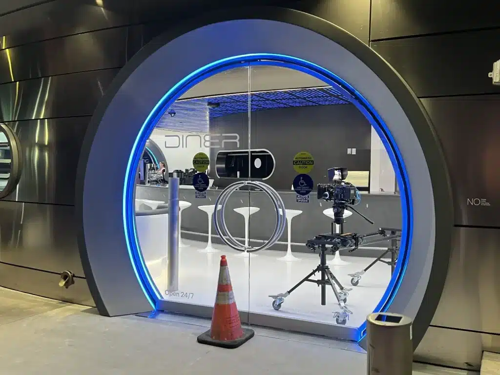 The design of the Tesla Diner is nothing short of remarkable. It embodies a “retro-futuristic” style, combining classic diner aesthetics with modern technological enhancements. Here’s what you can expect: