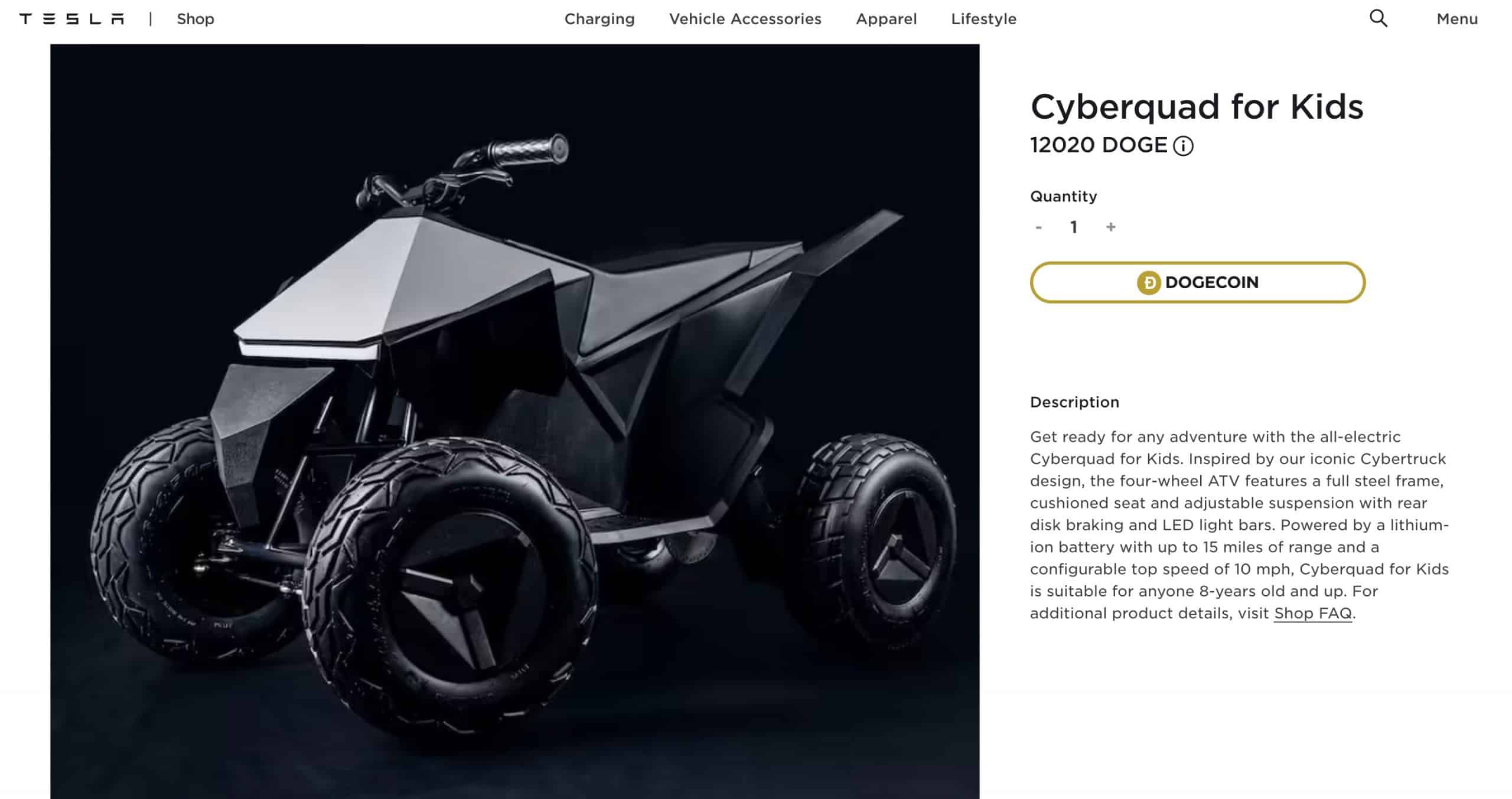 Tesla launches Dogecoin payments for Cyberquad for kids, Giga Texas Belt Buckle & Cyberwhistle