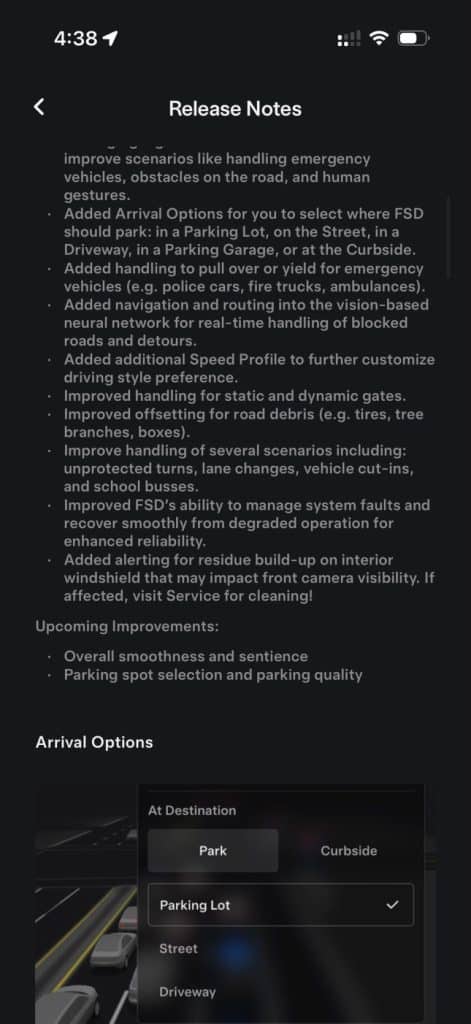 - One of the standout features in v14.2 is the inclusion of various parking location options. Whether you need to park in a driveway, garage, or at the curb, the system allows you to select desired spots for seamless navigation and convenience.