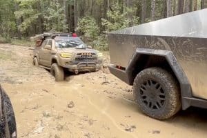As it turned out, the twin graffiti-wrapped Cybertrucks were test units that were deployed in Baja for some off-road durability testing. Over the course of the video, one could see that the Cybertrucks were pushing through the Baja trail pretty well. At some points in the livestream, one of the Cybertrucks could be seen drifting around and moving at a high rate of speed.