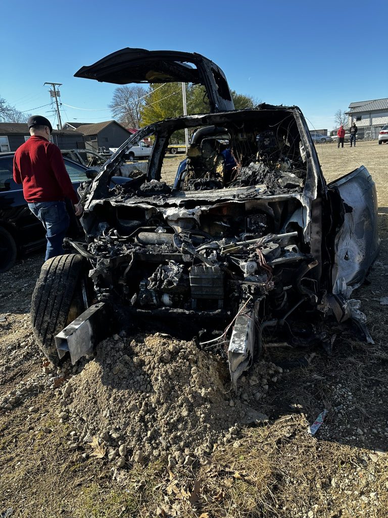 Irina attempted to avert the collision by slowing down and pulling onto the shoulder of the road. The vehicle continued toward her Model X, and eventually collided with her. The Towncar ignited into flames, eventually catching the Tesla on fire.