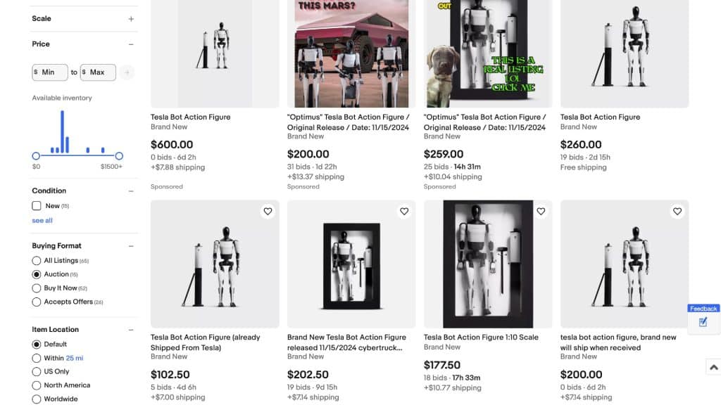 1. How much are Tesla Optimus action figures selling for on eBay?