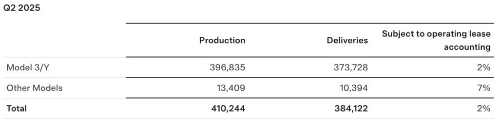 Tesla’s performance in Q2 2025 was underscored by the delivery of over 384,000 vehicles, solidifying its standing as a leader in the electric vehicle market. This achievement is even more impressive when considering the company’s production numbers, which reached 410,244 units.