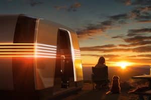The most striking feature of the Robovan is its aerodynamic box-like structure. Lacking a windshield and a traditional driver’s cockpit, it breaks away from conventional vehicle architecture. This choice emphasizes the van’s fully autonomous capabilities, setting a new standard for how self-driving technology could revolutionize car design.